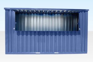 The combination of two 3m green containers gives an internal length of 5.7m. With all the usual benefits of the flat pack storage range notably that the individual components can be moved by hand and erected in challenging positions behind or even within buildings as required.