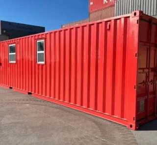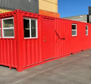 40FT Modified Shipping Container Office – 800 Sq Ft, Red, w/ Bathroom & Storage