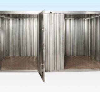 The combination of two 3m green containers gives an internal length of 5.7m. With all the usual benefits of the flat pack storage range notably that the individual components can be moved by hand and erected in challenging positions behind or even within buildings as required.