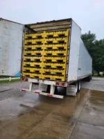 Up to two 10ft shipping containers can be loaded into this vehicle and trailer. For drop-off, you’ll need a 100ft straight line.