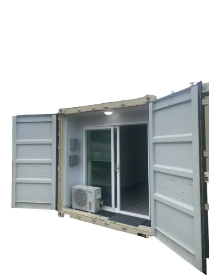 These are 2 twenty foot high cube shipping containers that were custom fabricated to become an office. They are built to be welded together to make a 20’x16′ space. If purchased we can also provide the structural plans that have been signed and stamped by a licensed structural engineer. You will also receive the 3D plans of how we intended this build to be laid out, should you want it. Selling ‘as is’ for 9K, and can offer additional modifications/ finishes for an additional cost if you are interested. This is a great deal if you are looking for a DIY build of an ADU or they make a GREAT and profitable AirBnb.